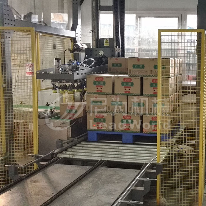 進(jìn)箱——轉(zhuǎn)箱——分排——成堆——移堆——提堆——進(jìn)堆——進(jìn)托——下堆——出垛等步驟。