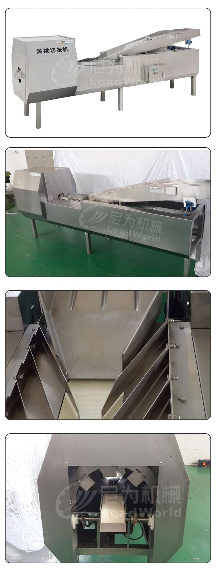 該切條機(jī)采用不銹鋼SUS304﹟制造,運(yùn)行穩(wěn)定可靠,操作簡單方便,切條均勻美觀,是各類水果罐頭出口加工企業(yè)的理想設(shè)備。