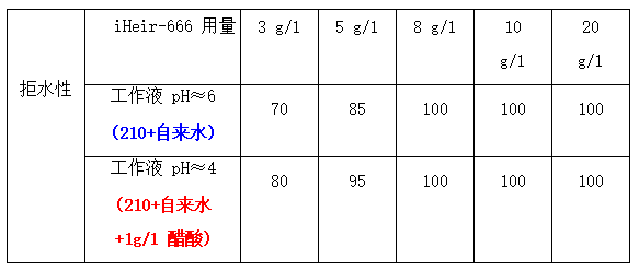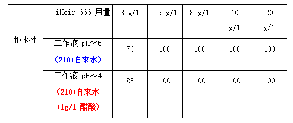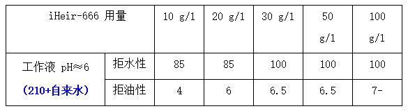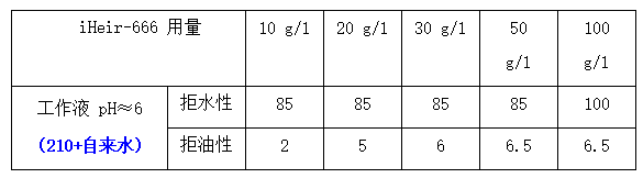 5、生產適用性廣:iHeir-666 的拒水、拒油性能對工作液 pH 值不敏感;